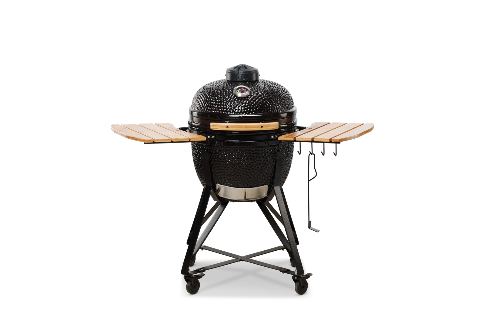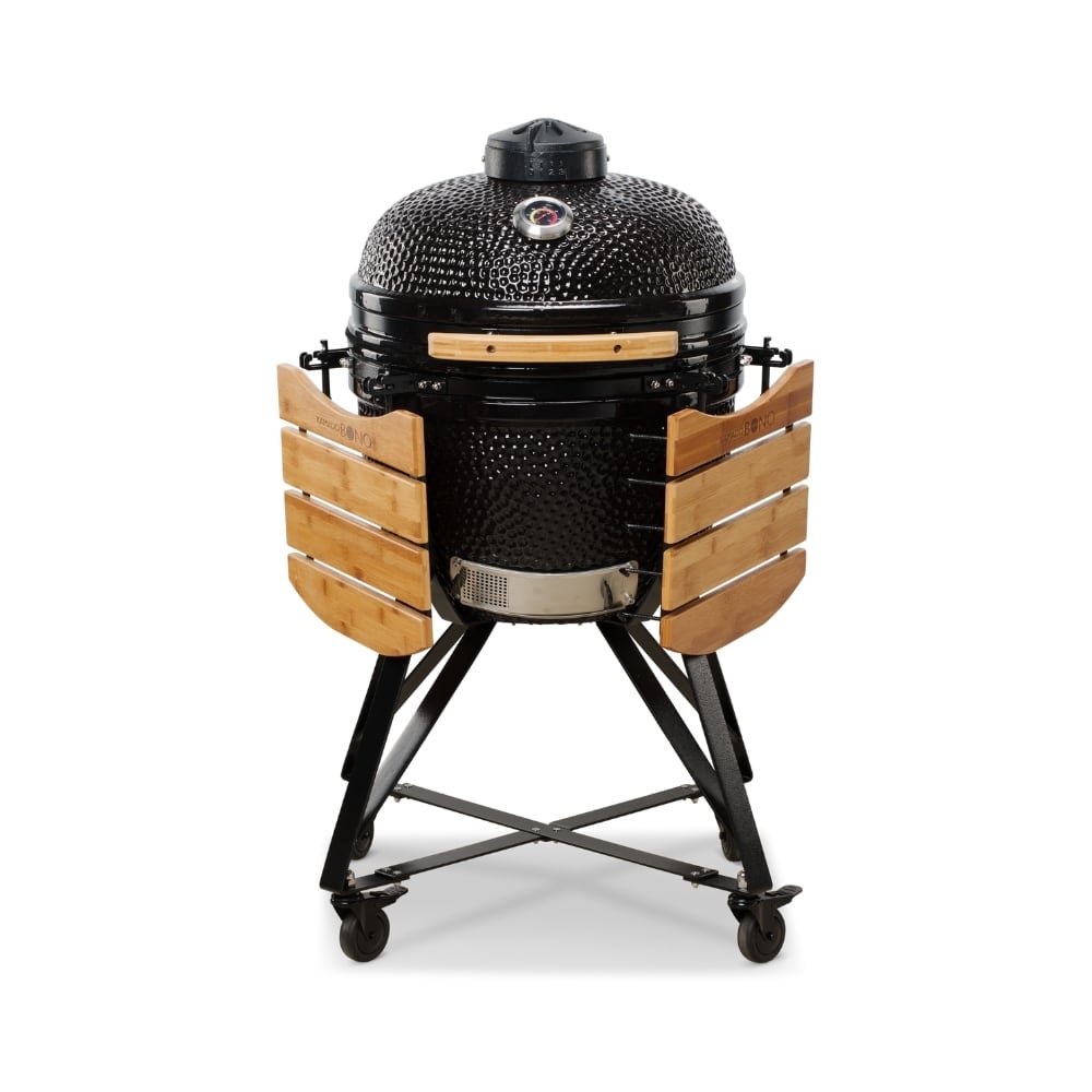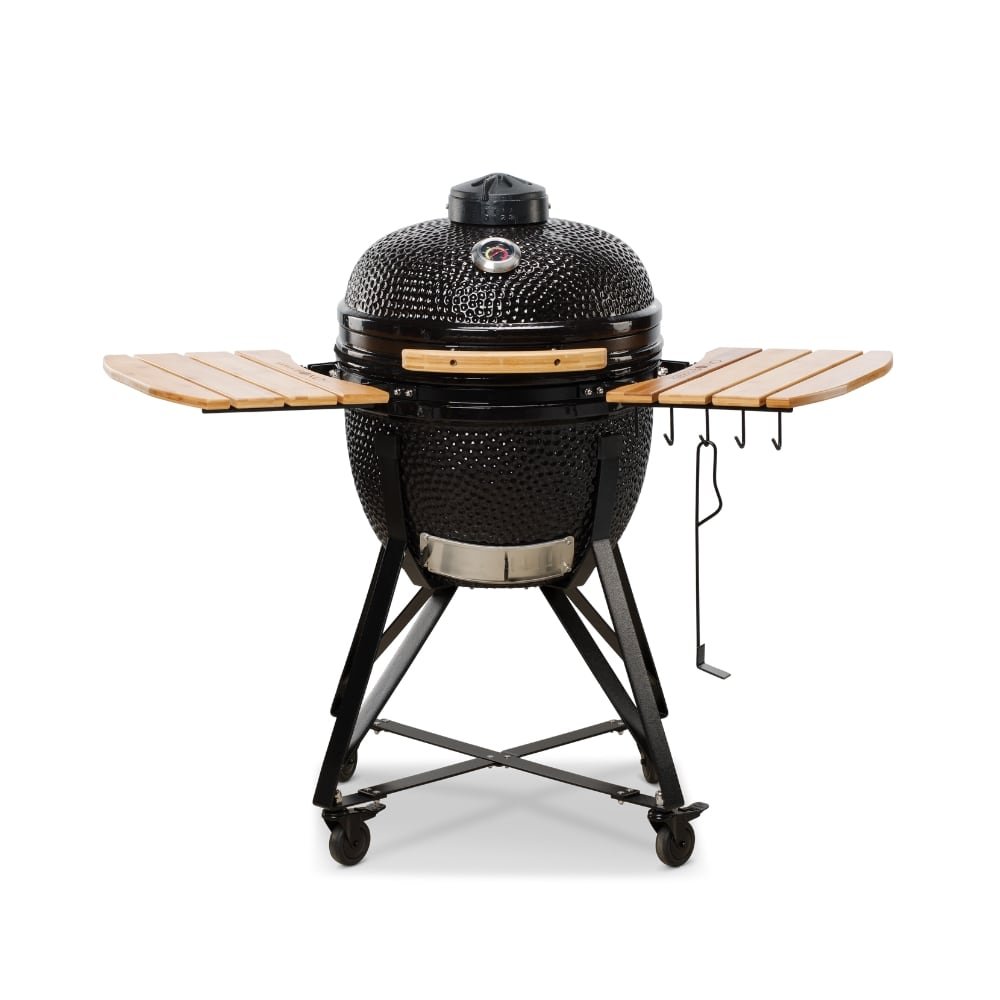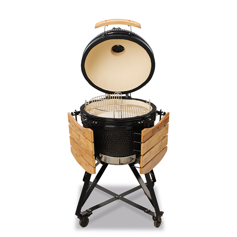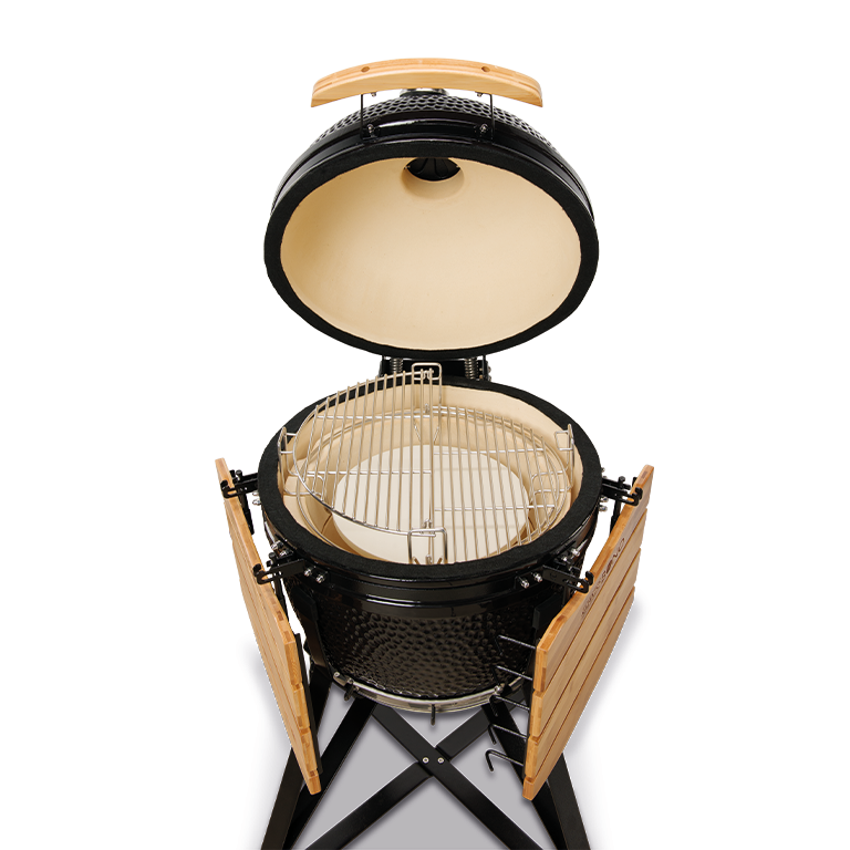 Un modello meraviglioso,adatto alla preparazione di cibi per famiglie o gruppi numerosi (fino a 10 persone). Composto da un carello in acciaio antirugine, 2 ripiani lateraliin legno duro,sfiato superiore completamente apribile, guarnizione in fibra di vetro, sistema a due zone, deflettore di calore, paletta rccogli cenere, supporto per il pollo, llibro di ricette.